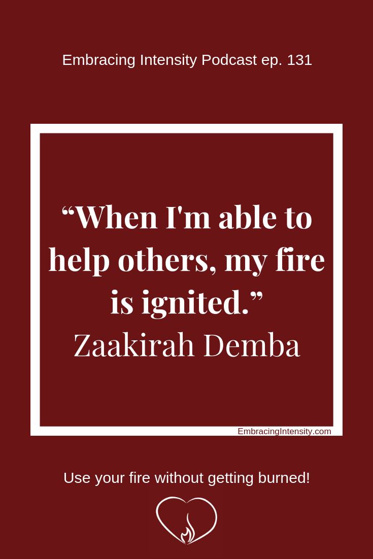 Now instead of. Myself up about not measuring up to my own self-imposed standards. I’m on a mission to help people embrace their own intensity so they can share their gifts with the world. Through the embracing intensity community, educational assessment, and other tools to help use your fire without getting burned, you can join us@embracingintensity.com.